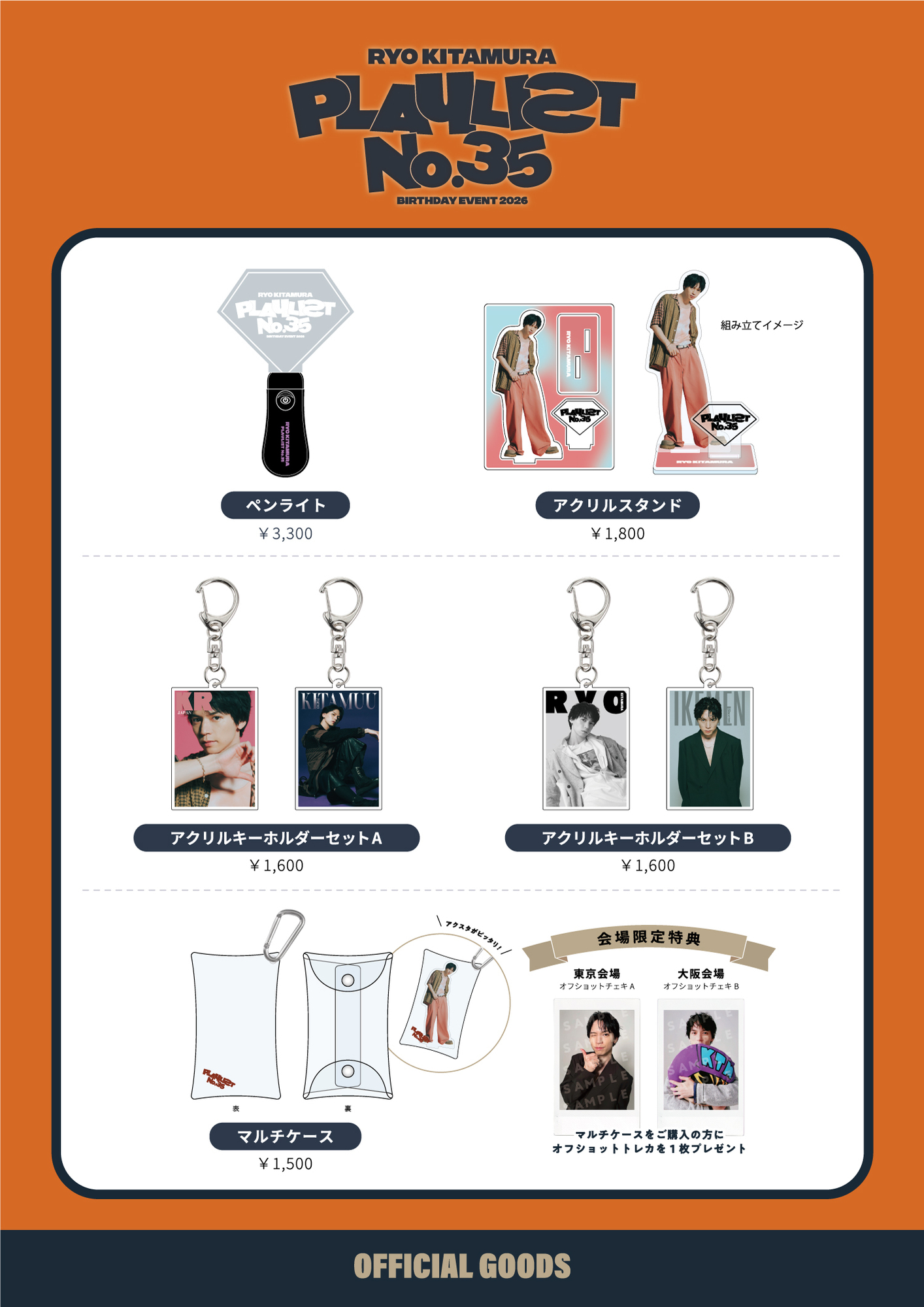 2月開催、「RYO KITAMURA BIRTHDAY EVENT 2026 “Playlist No.35”」会場でのグッズ販売が決定しました!